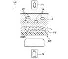 これに対し、図12に示されるように、比較例のフローセル200では、流路202に検体流体2をシース流体4(図12では、検体流体2の上側のシース流体4を省略している)で上下から挟み込むように層流で流す構成とされている。このフローセル200では、検体流体2とフローセル200の流路202の下壁部202Aとの間にシース流体4が流れるため、シース流体4の揺らぎによる画像の歪(ノイズ及び不鮮明画像)等が発生し、撮影画像が不鮮明になる。また、比較例では、シース流体4で検体流体2を挟み込んでいる。しかし、上記実施形態では、検体流体2はシース流体4によってフローセル10の壁面に押し付けられているため、比較例と比べて検体流体2の流れを安定させることができる。  On the other hand, as shown in FIG. 12, in the