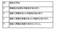 条件分岐処理S3001,S3002,S3003の個別評価において、放射線画像が診断に不適である個別評価が導出された場合、4段階中最も低い撮影評価である図4のNo.1の適否情報が出力される。4段階中最も低い撮影評価は、放射線画像の再撮影が必要となる可能性が最も高い評価指標である。そのため、ユーザに対して放射線画像の再撮影が促される。