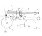 搬送コンベヤ2は、載置された帯状ゴム部材Rを、前方に配置されている成形ドラム13に向かって搬送する。搬送コンベヤ2は、前後のプーリの間に張設されたコンベヤベルト2aを有していて、コンベヤベルト2aはサーボモータ等の駆動源によって回転駆動される。  The