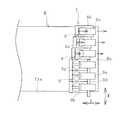このようにして、帯状ゴム部材Rの所定長さを成形ドラム13の外周面13a上に巻き付けた後、成形ドラム13の回転および後端部接合機構7の前進移動を停止する。即ち、後端部Rbおよびその周辺部分を除いて、帯状ゴム部材Rを外周面13a上に巻き付けた状態にする。この時、後端部Rbは図10に例示するように、幅方向Wに並列された複数の後端部保持部8により保持されていて、それぞれの後端部保持部8は、それぞれの後端部保持部8に対応する移動部9aによって、個別に前後方向Lに移動できる状態になっている。  In this way, after winding the predetermined length of the strip-shaped rubber member R on the outer