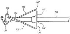 前記方法は、さらに、前記針の変形部を前記近位壁に当接させるステップを含んでもよい。例えば、変形部が前記近位壁に隣接するとき、前記変形部は、前記近位壁の近位開口部を画定する周縁部に隣接してもよい。前記近位壁は、前記変形部が通過するのを妨げる。 The method may further include a step of bringing the deformed portion of the needle into contact with the proximal wall. For example, when the deformed portion is adjacent to the proximal wall, the deformed portion may be adjacent to a peripheral edge that defines a proximal opening in the proximal wall. The proximal wall prevents the deformed part from passing through.