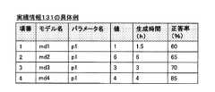 具体的に、実績測定部117は、例えば、情報格納領域130に記憶された正答率情報131aを参照することにより、S13の処理で生成したモデル群mdgを用いた場合における正答率cの取得を行うものであってよい。また、実績測定部117は、S13の処理で生成したモデル群mdgの生成が開始されてから完了するまでの時間を計測することによって、S13の処理で生成したモデル群mdgの生成時間tの取得を行うものであってよい。以下、正答率情報131aの具体例について説明を行う。 Specifically, the