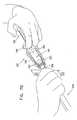 本発明のさらに別の好ましい実施形態によれば、内視鏡から弾性カラー部分を有する補助内視鏡アセンブリを取り外す手持ち式カラー切断ツールであって、手持ち式カラー切断ツール本体部分と、切断ツール本体部分と関連付けられ、弾性カラー部分を切断するようになっている切断エッジと、手持ち式カラー切断ツール本体部分から突出し、弾性カラー部分からおよび切断エッジから内視鏡を隔てるために、弾性カラー部分と内視鏡との間に挿入されるようになっているスペーサ部分と、を含む切断ツールが提供される。 According to yet another preferred embodiment of the present invention, a hand-held color cutting tool for removing an auxiliary endoscope assembly having an elastic collar portion from the endoscope, the hand-held color cutting tool main body portion and the cutting tool main body. With a cutting edge that is associated with the part and is designed to cut the elastic collar part, and with the elastic collar part to project from the body part of the handheld collar cutting tool and separate the endoscope from the elastic collar part and from the cutting edge. A cutting tool is provided that includes a spacer portion that is designed to be inserted between the endoscope.