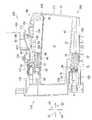 (5) 好ましくは、上記筐体は、上記貯留室の前端を画定する内前面と上記貯留室の後端を区画する内後面との間であって、上記貯留室の上端を区画する内上面の上方において上記筐体の上面を画定する上部部材を有しており、上記干渉面は、上記上部部材から上方に延びている。 (5) Preferably, the housing is between the inner front surface defining the front end of the storage chamber and the inner rear surface partitioning the rear end of the storage chamber, and the inner upper surface partitioning the upper end of the storage chamber. It has an upper member that defines the upper surface of the housing above the above, and the interference surface extends upward from the upper member.