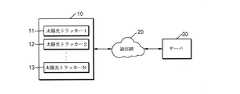 群集太陽光トラッカー10は、複数の太陽光トラッカーが群集の形態で存在するものであって、図1では、太陽光トラッカー1(11)、太陽光トラッカー2(12)または太陽光トラッカーN(13)が記載されているが、これは例示に過ぎない。群集太陽光トラッカー10は、それぞれ自体の発電量情報、高度情報、方位角情報、GPS情報、日射量情報、または風速情報などを検出してサーバ30に伝送しうる。このために、群集太陽光トラッカー10は、それぞれサーバ30と通信網20とで連結されている。  The crowd