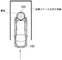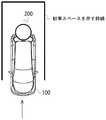 図5、図6、図7は、上記の実施形態における出力部に表示される俯瞰画像の例を示す図である。図5、図6、図7では、駐車スペースを示す枠線、車両100、送電装置200が示されている。車両100は、枠線で示される駐車スペースに駐車しようとしている。当該駐車スペースには、送電装置200が存在する。各図における矢印は、車両100の進行方向を示す。尚、図5〜図7に示す車両100はあらかじめ記憶手段に格納されている画像であり、撮像画像を基に生成された俯瞰画像に車両100の画像が重畳表示される。また、図5における送電装置200は、実際の画像であり、図6、図7における送電装置200は記憶手段に格納されている画像である。図5では、車両100は、後退して