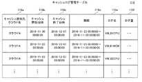 キャッシュログ管理テーブル116は、各クラウドにキャッシュされているログの情報を管理するテーブルである。図8は、本発明の実施の形態で用いられるキャッシュログ管理テーブルの一例を示す図である。図8に示すように、キャッシュログ管理テーブル116は、キャッシュログの格納先クラウドを特定するためのクラウド名、キャッシュを開始した日時を示すキャッシュ開始日時、キャッシュログの削除タイミングを示すキャッシュ終了日時、キャッシュログの保存されている期間を示す期間、保存しているログを示すログ名、及び保存されているキャッシュログのデータ量を示すログ量を情報として有している。 The cache log management table 116 is a table that manages log information cached in each cloud. FIG. 8 is a diagram showing an example of a cache log management table used in the embodiment of the present invention. As shown in FIG. 8, the cache log management table 116 includes a cloud name for specifying a cache storage destination cloud, a cache start date and time indicating a cache start date and time, a cache end date and time indicating a cache log deletion timing, and the like. It has a period indicating the period in which the cache log is stored, a log name indicating the stored log, and a log amount indicating the amount of data in the stored cache log as information.