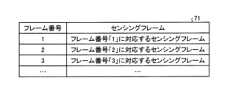 図13において、フレーム番号は、各映像フレームを、一意に識別する番号である。なお、映像フレームのフレーム番号は、センシングフレームのフレーム番号と同期しているものとする。映像フレームは、カメラ60に撮影された映像フレームである。  In FIG. 13, the frame number is a number that uniquely identifies each video frame. It is assumed that the frame number of the video frame is synchronized with the frame number of the sensing frame. The video frame is a video frame taken by the