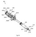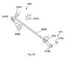 本ツールは、該メカニズムが1つのケーブルへの張力を別のケーブルへの張力に比べて増大するロッカー部材であるようにアレンジされることができる。このロッカーメカニズムは、該ロッカーメカニズムが、軸の周りを回転(例えば、行き来揺動)して1つのプーリを遠位に1つのプーリを近位に動かし、これにより2つのケーブルの1つへの張力を増大し、該2つのケーブルの他方への張力を緩めるように配置されることができる。 The tool can be arranged such that the mechanism is a rocker member that increases tension on one cable relative to tension on another cable. The rocker mechanism is such that the rocker mechanism rotates around an axis (eg, swings back and forth) to move one pulley distally and one pulley proximally, thereby to one of two cables. It can be arranged to increase tension and loosen tension on the other of the two cables.
