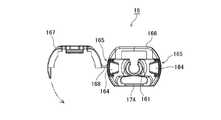 挿入筒本体7aの第2の部分7gには、第1の突起7hと、第2の突起7iと、第3の突起7jとが形成されている。これら3つの突起7h,7i,7jは、挿入筒7に付属部材16を係着させるために、後述する係着部16bに対応して形成されたものであって、被係着部を構成する。第1の突起7hは、第2の部分7gの一方(左側)の側面から突出する状態で形成されている。第2の突起7iは、第1の突起7hの後方に隣接する状態で形成されている。第2の突起7iは、第1の突起7hよりも小さい突出量で、第2の突起7iの一方(左側)の側面から突出している。第3の突起7jは、第2の部分7gの下面から下方に突出する状態で形成されている。第3の突起7jは、第1の突起7hよりも後方に位置をずらして形成されている。  A