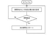 図3〜図5に、実施例のアルゴリズムを示す。ガス検出装置の出荷前に、空気中の抵抗値Rair0、及び1〜複数の濃度でのガス中の抵抗値Rgas0を測定し、これらをメモリ16に不揮発に記憶させる。空気中のガスセンサの抵抗値Rairを、図4のアルゴリズム等により抽出する。例えば10分以上1日以下の期間を所定の期間とし、期間内のガスセンサの抵抗値の最大値をサンプリングする。この抵抗値を次の期間での、空気中の抵抗値Rairとする。期間は20分以上4時間以下がより好ましい。  3 to 5 show the algorithm of the embodiment. Before shipping the gas detector, the resistance value Rair0 in the air and the resistance value Rgas0 in the gas at one or more concentrations are measured, and these are stored in the
