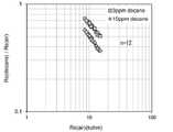 FIG. 15 shows the correlation between the resistivity ratio in decane and air and the resistance value in air in 3 ppm and 10 ppm decane. The number of sensors n was 12, and the result was the average of 12 sensors. The temperature was adjusted to 20 ° C and the relative humidity was adjusted to 65%. If the decane concentration is the same, the higher the resistance value in the air, the smaller the resistance ratio in the decane and the air, and the correlation between them is extremely high. Therefore, in this case as well, the gas can be detected by using the above-mentioned correction factor C and comparing it with C · R gas0. Further, the gas can be detected by comparing with D · Rair using the above-mentioned correction factor D.