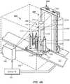 この代替の実施形態では、透過型画像化、吸光度画像化、及び/又は反射型画像化に焦点を当てることによって異なる種類の特徴付けに望ましい複数の照明モードを達成することが可能である。例えば、図4Gの構成では、画像化位置441は、光パネル組立部450D、450E、及び450Fを使用して、前面照明及び背面照明又はそれらの様々な組み合わせを含んでいてもよい。図示の実施形態では、光パネル組立部450E、450Fは、正面450SE、450SFが互いに略平行であり、トラック121の方向とほぼ平行になるように配置される。例えば、光パネル組立部450Dが照射されていない状態での光パネル組立部450E及び450Fの照明は、カメラ440Aのための試料212及び試料容器102の前面照明に使用してもよい。いくつかの実施形態では、カメラ440Aはモノクロカメラであってもよく、光パネル組立部450E及び450Fによる照明を、任意の順序で、例えば、赤(R)から緑(G)、緑(G)から青色(B)、及び/又は他のスペクトルなど複数の離散的スペクトル間で切り替えることによって、複数のスペクトルでの画像化中に前面照明を行うようにしてもよい。  In this alternative embodiment, it is possible to achieve multiple illumination modes desirable for different types of characterization by focusing on transmissive imaging, absorbance imaging, and / or reflective imaging. For example, in the configuration of FIG. 4G, the
