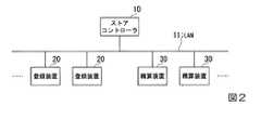 図2に示すように、POSシステム1は、ストアコントローラ10と、N台(Nは2以上の整数)の登録装置20と、M台(Mは1以上の整数)の精算装置30とを含んで構成され、LAN(Local  Area  Network)11により接続されている。  As shown in FIG. 2, the