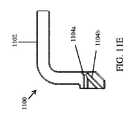 切断ガイド特定の実施態様では、5−DOF面取り切断ガイド1100が図11A〜11Eに示される。図11Aは、面取り切断ガイド1100の上部の斜視図であり、図11Bは、その底部の斜視図であり、図11Cは、上面平面図であり、図11Dは、前方立面図であり、および、図11Eは、側面立面図である。面取り切断ガイド1100は、逆にした「L」の形状のガイド本体1102を備える。ガイド本体1102は、第一の取り付けスロット1104a、第二の取り付けスロット1104b、遠位ガイドスロット1106、前部ガイドスロット1108、および、面取りガイドスロット1110を備える。取り付けスロット1104の片方側は開いているので、面取り切断ガイド1100は、骨ピンの上へ滑ることができる。取り付けスロット開口部は、取り付けスロット1104の右側に、図11Dにおいて最もよく視覚化される。5-DOF Chamfering Guide Cutting Guide In certain embodiments, the 5-DOF