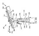 ハンドヘルド部202の外側ケーシング内には、前部ボールスクリュー216aに動力供給する前部アクチュエータ210aおよび背部ボールスクリュー216bに動力供給する背部アクチュエータ210bがある。アクチュエータ(210a、210b)は、ボールスクリュー(216a、216b)を双方向に回転させるサーボモーターであってよい。直線レール(208a、208b)の第一の末端は、ヒンジ(220a、220b)を介して作業部204に取り付けられて、ここで、ヒンジ(220a、220b)は、作業部204が直線レール(208a、208b)に対して旋回するのを可能にする。ボールナット(218a、218b)は、直線レール(208a、208b)の第二の末端において取り付けられる。ボールナット(218a、218b)は、ボールスクリュー(216a、216b)と機械的に連通している。アクチュエータ(210a、210b)は、ボールスクリュー(216a、216b)に動力供給して、それは、ボールナット(218a、218b)をボールスクリュー(216a、216b)の軸に沿って並進させる。したがって、作業部204の並進「d」およびピッチ「α」は、それらの対応するボールスクリュー(216a、216b)上のそれぞれのボールナット(218a、218b)の位置に応じて調節され得る。直線ガイド222は、並進方向「d」での直線レール(208a、208b)の動きをさらに制約およびガイドし得る。  Inside the outer casing of the