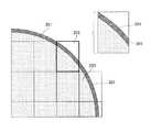 図3は、周辺ショット領域202を含む基板Wの一部を拡大した図である。周辺ショット領域202には有効なチップをとれない領域が存在する。周辺ショット領域202は基板Wの外周201から所定の範囲にわたりインプリント材Rの塗布が禁止される塗布禁止領域301、すなわち、下地が配置されていない領域を含んでいる。  FIG. 3 is an enlarged view of a part of the substrate W including the