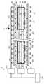 コイルコントローラ302には、複数の電流コントローラ303が通信可能に接続されている。コイルコントローラ302及びこれに接続された複数の電流コントローラ303は、2列のコイル202のそれぞれの列に対応して設けられている。各電流コントローラ303には、コイルユニット203が接続されている。電流コントローラ303は、接続されたコイルユニット203の各々のコイル202の電流の大きさを制御することができる。  A plurality of