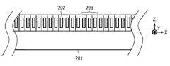 次に、本実施形態による搬送システム1における固定子201について図1A、図2及び図3を用いて説明する。図3は、固定子201のコイル202を示す概略図である。なお、図3は、コイル202をY方向から見た図である。  Next, the