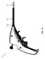 本発明によれば、シャフトの可撓性近位部分は、蛇行経路に沿って顕著な長さ(例えば、95cm〜140cm)を延在することができる可撓性の高い要素であるように構成され、シャフトの遠位側関節接合部分は、シャフトの可撓性近位部分の遠位端に対して自在に関節接合できるように構成され、エンドエフェクタは、遠位側関節接合部分の遠位端に対して選択的に回転させられるように構成され、選択的に作動させてもよく、全ての機能は、ハンドルを介してユーザの片手で実施することができる。本発明の好ましい一形態では、医療用器具のシャフトのほぼ全体が可撓性であり、シャフトの移行点よりも近位側の部分(即ち、可撓性近位部分)は受動的に可撓性であり(例えば、蛇行経路を辿ることができる)、シャフトの移行点よりも遠位側の部分(即ち、遠位側関節接合部分)は能動的に可撓性である(即ち、所望の構成へと自在に関節接合させることができる)。 According to the present invention, the flexible proximal portion of the shaft is configured to be a highly flexible element capable of extending a significant length (eg, 95 cm to 140 cm) along a serpentine path. The distal joint of the shaft is configured to be freely articulated with respect to the distal end of the flexible proximal portion of the shaft, and the end effector is distal to the distal articular joint. It is configured to be selectively rotated with respect to the edges and may be selectively actuated, and all functions can be performed with one hand of the user via the handle. In a preferred embodiment of the invention, almost the entire shaft of the medical device is flexible and the portion proximal to the transition point of the shaft (ie, the flexible proximal portion) is passively flexible. It is sex (eg, it can follow a serpentine path) and the portion distal to the shaft transition point (ie, the distal articular junction) is actively flexible (ie, desired). Can be freely articulated into the configuration).