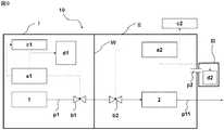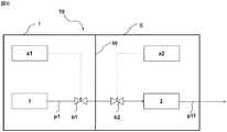 W Isolation wall c1, c2 Transmitter that transmits signal from ammonia detector d1, d2 Ammonia abatement device e1 Hydrogen gas detector f1 Transmitter that transmits signal from hydrogen gas detector p3 Feed pipe p4 Transmission pipe p12 ,