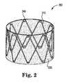 [0063]圧縮永久歪みを被らない、またはバルーンもしくは他の膨張デバイスにより径方向に膨張させられる基礎ステントおよび袖部を有するステントが、例えば挿入装置の内部でまたはバルーンを覆って、径方向に圧縮された状態で包装され、出荷されてもよい。圧縮永久歪みを被る可能性がある、または自己膨張型であることが望ましい基礎ステントまたは袖部を有するステントが、非圧縮状態で包装され、出荷され、かつ挿入装置内に配置されているか、または手術現場において、鉗子もしくは他の圧縮デバイスを用いて握持されている。基礎ステントと袖部とは、手術現場への出荷前に組み立てられてもよいか、または別々に包装され、そのような現場で組み立てられてもよい。いずれにしても、基礎ステントおよび袖部は、通常、適切な包装(例えば、バイアル、小袋、袋、箱またはトレー)内に封止され、手術現場への出荷前に、(例えば、熱、ガスまたは放射線を使用して)滅菌される。 [0063] A stent having a basal stent and a sleeve that is not subject to compressive permanent strain or is radially inflated by a balloon or other inflatable device, radially, for example, inside an insertion device or over the balloon. It may be packaged and shipped in a compressed state. Stents with basal stents or sleeves that can suffer compressive permanent strain or are preferably self-expanding are packaged, shipped, and placed in the insertion device in an uncompressed state, or It is held at the surgical site using forceps or other compression device. The basal stent and sleeve may be assembled prior to shipment to the surgical site or may be packaged separately and assembled at such site. In any case, the basal stent and sleeves are usually sealed in suitable packaging (eg vials, sachets, bags, boxes or trays) and prior to shipment to the surgical site (eg heat, gas). Or sterilized (using radiation).