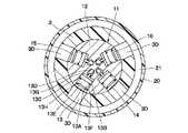 また、アーム部2には、アーム部2の基端部2Aと平面状隙間4との間を延び、内通路と外通路とを有する第1二重管路24および第2二重管路27が設けられている。この上で、第1二重管路24の内通路と第2二重管路27の内通路とは、エアモータ6との間で圧縮エアが流通する圧縮エア排出路25,28となっている。また、第1二重管路24の外通路がパージエア供給路26となり、第2二重管路27の外通路がパージエア排出路29となっている。この構成では、限られたスペースに複数のエア流路を設けることができる。  Further, the