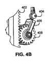 ホイール408は、平面ギヤ表面地形402またはラック表面地形42との接続を可能にするギヤ歯付き表面を含む。他の態様において、ホイール408は、拍車状ギヤまたは螺旋ギヤを作成するように構成された表面地形408との接続を可能にする、拍車状ギヤまたは螺旋ギヤ表面を有する。  The