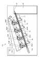 ここで、搬送スクリュー26によって矢印H方向へと搬送されるトナーの経路を第一搬送経路51とよぶ。またカートリッジ7の長手方向一端側に設けられて、第一搬送路と交差(直交)するトナーの経路(第一カップリング29以降の経路)を第二搬送経路61と呼ぶこととする。  Here, the path of the toner conveyed in the direction of arrow H by the