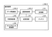 通信制御部102は、通信装置100による無線通信を制御する。例えば通信制御部102は、送受信部101、データ制御部103、同期制御部104、および、キャリアセンス制御部105を制御し、無線信号を送受信する。通信制御部102による制御処理の詳細は後述する。 The communication control unit 102 controls wireless communication by the communication device 100. For example, the communication control unit 102 controls the transmission / reception unit 101, the data control unit 103, the