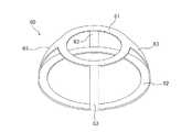 弾性台座部60において、弾性ストリップ部63の環状基部62側端部は、図16に示すように、環状基部62の内周縁部と連結されていてもよい。このような構成は、弾性ストリップ部63において、良好な弾性性を発現する所定の湾曲形状を設定したうえで、環状基部62の外形サイズを環状基部61の外形サイズに対して大きく設計するのに適する。弾性台座部60は、環状基部62の外形サイズが大きいほど、上述の空間確保機能を安定して発揮する傾向にある。  In the