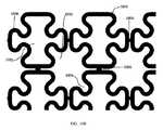 図11A、図11Bは、クローバー形又は小葉形セル構成を有するステント要素の代替の実施形態を例示している。図11A、図11Bは4つの小葉を備えたセルを描いているが、セルは、任意の数の小葉を有し得る。図11Aは、この小葉形セル構造を有する要素の2次元図である。図11Bは、図11Aのセルの拡大図である。図11Aのセル構造を備えたステント要素は、円筒を形成するための左から右への丸める向きを有する。この実施形態において、要素1100は、混ぜ合わされた小葉形クローズドセル1101、1102を備える。小葉形セル1101は、繰り返しパターンで長手方向及び/又は円周方向に整合されてもよい。同様に、小葉形セル1102は、繰り返しパターンで長手方向及び/又は円周方向に整合されてもよい。追加的又は代替的に、小葉形セル1102及び小葉形セル1101は、交互のパターンで螺旋状に整合されてもよい。実施形態において、小葉形セル1102及び小葉形セル1101は、円周方向にオフセットされる。追加的に、小葉形セル1102は、隣り合う4つの小葉形セル1101間の中心位置に形成されてもよい。実施形態において、長手方向に整合された長手方向小葉1103は、円周方向に整合された円周方向小葉1104よりも大きくてもよい。代替的に、長手方向小葉1103は、円周方向小葉1104と同じ大きさであってもよい。長手方向に整合された隣り合う小葉形セル1101の長手方向小葉1103は、長手方向連結ストラット1105により連結されてもよい。円周方向に整合された隣り合う小葉形セル1101の円周方向小葉1104は、円周方向連結ストラット1106により連結されてもよい。実施形態において、長手方向連結ストラット1105は、円周方向連結ストラット1106よりも幅広である。代替的に、長手方向連結ストラット1105は、円周方向連結ストラット1106と同じ幅を有し得る。要素1100は、拡張前のバルーンに装着されたときに圧着形態をとってもよい。同じように、要素1100は、バルーンにより拡張されたときに拡張形態をとってもよい。凹面1107は、小葉形要素1100が圧着状態から拡張状態に移行するにつれて小葉形セル1101の中心から離れる。  11A, 11B illustrate alternative embodiments of stent elements with a clover-shaped or lobular cell configuration. Although FIGS. 11A and 11B depict a cell with four leaflets, the cell can have any number of leaflets. FIG. 11A is a two-dimensional view of the element having this lobular cell structure. 11B is an enlarged view of the cell of FIG. 11A. The stent element with the cell structure of FIG. 11A has a left-to-right rounding orientation to form a cylinder. In this embodiment,