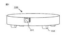 図において、駐車支援装置100は、センサーとしてのカメラ部101と駐車場内を移動させる移動手段を構成する車輪102とを備えている。なお、移動手段としては、駐車場内を自在に移動できればよく、例えばドローンのように空中を飛行するものであってもよい。