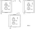 いくつかの実施形態では、機器100は、1つ以上の入力機構106及び108を有することができる。入力機構106及び108は、含まれる場合には、タッチ感知式とすることができる。タッチ感知式入力機構の例として、タッチ感知式ボタン、及びタッチ感知式表面が挙げられる。入力機構106及び108は、含まれる場合には、物理的とすることができる。物理的な入力機構の例としては、押しボタン及び回転可能な機構が挙げられる。ベゼルを含み得る本体102は、入力機構として作用するベゼル上の所定の領域を有することができる。いくつかの実施形態では、機器100は、取り付け機構を有することができる。かかる取り付け機構が含まれる場合には、これによって、機器100を、例えば、衣類、宝石、及び他の着用可能なアクセサリに取り付けることができる。例えば、取り付け機構は、帽子、眼鏡、イヤリング、ネックレス、シャツ、ジャケット、ブレスレット、時計ストラップ、チェーン、ズボン、ベルト、靴、財布、バックパック、その他、に取り付けることができる。  In some embodiments, the