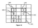 図10に基づいて、3つの搬送デバイスが第1の方向に移動及び/又は加速している。より具体的には、2つの搬送デバイスが負方向に加速し、1つの搬送デバイスが正方向に移動しており、合計3つの搬送デバイスである。この例では、所定の閾値は、第1の方向に移動する4つの搬送デバイスとして定義され得る。したがって、4つの搬送デバイスが制約領域内で移動/加速していると、更なる搬送デバイスは、それらの許可が保留され、及び/又は制約領域を回避するようにルートが決定されることになる。例えば、前は静止していた第4の搬送デバイス1002は、制約領域内で負方向に移動し始め得る(矢印1003で示す)。したがって、第1の方向に移動/加速する4つの搬送デバイスという所定の閾値に達する。したがって、第5の搬送デバイス(図示せず)は、許可が保留され、及び/又は制約領域を回避するようにルートが決定されることになる。しかしながら、制約領域内で既に移動/加速している搬送デバイスは、制約領域内で移動/加速し続け、制約領域を出ることもある。  Based on FIG. 10, three transport devices are moving and / or accelerating in the first direction. More specifically, two transport devices are accelerating in the negative direction and one transport device is moving in the positive direction, for a total of three transport devices. In this example, a given threshold can be defined as four transport devices moving in a first direction. Therefore, if the four transport devices are moving / accelerating within the constrained area, further transport devices will be deferred from their permissions and / or routed to circumvent the constrained area. .. For example, the previously stationary