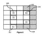 図8は、図7に示されるアクションと組み合わされても組み合わされなくてもよい別の例を示す。特に、図8では、制約領域内の4つの搬送デバイスの制約限界が所定の閾値を超える。したがって、起点601にある搬送デバイスは、制約領域を横断することができない。図7で説明されたように、これは、搬送デバイスが制約領域に入るための許可を保留することによって達成される。しかしながら、図8では、ルート決定手段101は、制約領域を横断しない起点601からターゲット602までの搬送デバイスのためのルート608を決定するように構成される。このようにして、搬送デバイスは、制約領域を回避してルート608上にうまく方向付けられる。  FIG. 8 shows another example that may or may not be combined with the actions shown in FIG. In particular, in FIG. 8, the constraint limits of the four transport devices within the constraint region exceed a predetermined threshold. Therefore, the transport device at the