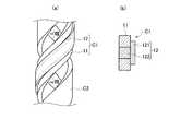 或いは、図6(a)及び図6(b)に示すように、基体11の内部に埋め込まれた放熱材12と、一部がバレル10の表面に露出した放熱材12とを、基体11の膜厚方向に積層してもよい。図6(a)に示した例では、それぞれの放熱材12が放熱用コイルバネC1の延伸方向に沿って配置されている。  Alternatively, as shown in FIGS. 6A and 6B, the