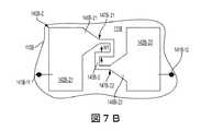 図7Aおよび図7Bは、脆弱ガラス基板110Bの上面111B上に直接配置されたボウタイ型パターン化金属層構造を含む自己制限抵抗素子140B−1および140B−2を示す平面図であり、各抵抗素子は、2つの抵抗構造の下向きテーパ部分の間に接続されたヒューズ素子を含む。たとえば、自己制限抵抗素子140B−1は、下向きテーパ部分146B−11を含む第1の抵抗構造142B−11と、下向きテーパ部分146B−12を含む第2の抵抗構造142B−12と、それぞれ下向きテーパ部分146B−11のテーパ端部147B−11と下向きテーパ部分146B−12のテーパ端部147B−12との間に接続されたヒューズ素子145B−1とを含む。同様に、自己制限抵抗素子140B−2は、下向きテーパ部分146B−21を含む第1の抵抗構造142B−21と、下向きテーパ部分146B−22を含む第2の抵抗構造142B−22と、テーパ端部147B−21とテーパ端部147B−22との間に接続されたヒューズ素子145B−2とを含む。各事例において、ヒューズ素子145B−1および145B−2は、トリガ電流にさらされたときに溶融し破断するように構成された幅W1を有する細い頸部構造を含む。好ましい実施形態では、幅W1は、脆弱ガラス基板110Bの厚さ(たとえば、図6に示す厚さT)よりも大きい。たとえば、厚さ0.25mmの脆弱ガラス基板を使用する実際的な実施形態では、ヒューズ素子145B−1および145B−2は、少なくとも0.3mmの幅W1を有する。対照的に、より大きな抵抗は電源からより多くの電力およびエネルギーを必要とするが、両方の自己制限抵抗素子(たとえば抵抗構造146B−11)の抵抗構造はほぼ任意の幅(サイズ)W2を有することができる。  7A and 7B are plan views showing self-restricting