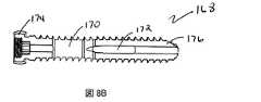 生体材料窓の重複する幾何学的形状は、挿入点または軌道に関係なく、固定領域が関節を横切ることを確実にする。複数の固定領域は、ねじの長さに沿った固定の可能性を増加させて、ねじの移動を減少させることを目的としている。これは、様々な患者の解剖学的構造、様々な骨質、および様々な軌道に適応するのに有利である。ねじアセンブリのシャフトはまた、骨移植片で充填され、固定のために、または、固定を向上させるために仙腸関節を横切り、特にねじの長さが長い場合には、ねじの移動を防止することが意図された、いくつかの重複する垂直スロットを含み得る。図8Aおよび図8Bに示したねじアセンブリもカニューレ状である。 The overlapping geometry of the biomaterial window ensures that the fixation area crosses the joint, regardless of the insertion point or trajectory. The plurality of fixing areas are intended to increase the possibility of fixing along the length of the screw and reduce the movement of the screw. This is advantageous for adapting to different patient anatomy, different bone quality, and different trajectories. The shaft of the thread assembly is also filled with bone grafts and crosses the sacroiliac joint for fixation or to improve fixation, preventing screw movement, especially if the thread length is long. It may contain several overlapping vertical slots intended. The screw assemblies shown in FIGS. 8A and 8B are also cannulated.
