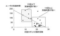 横軸は、対話ロボットの頷き回数を表している。縦軸は、ユーザの笑顔時間を表している。 The horizontal axis represents the number of nods of the dialogue robot. The vertical axis represents the smile time of the user.