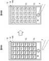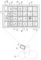 図6は、編集メニュー14Cにおいて選択/退避の項目がタップ操作されて、アルバム画面14がアルバムページ14Aと退避ページ14Bに2分割された状態を示す。図5においては、画像Pは、被写体が描かれた状態で示されているが、図6においては、画像Pの被写体は省略されており、代わりに、各画像Pには、それぞれの識別番号であるP1、P2、P3・・・が付された状態で示されている。図6は、画像Pの配列状態を簡略化した状態で示すアルバム画面14の模式図である。  FIG. 6 shows a state in which the selection / save item is tapped in the