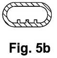 更に別の実施形態が図5に示されている。図5も、医療用チューブ102のフラットチャネルドレーン実施形態を示している。この実施形態では、図5の線A-Aに沿った図5aにその断面が示されている第1の領域すなわち近位領域は、前述の実施形態と同様である。すなわち、従来のチューブと同様に単一の内腔が円筒形の断面を有する。しかしながら、ここでは、前述の実施形態とは異なり、図5の線B-Bに沿った図5bにその断面が示されている第2の領域は、この領域におけるチューブのそれぞれの平坦な外壁及び湾曲した外壁に対して平行である平坦な辺及び湾曲した辺を有する、その断面形状が長円形かつ略卵形(ovoid)である単一の閉鎖した内腔を有する。この実施形態の医療用チューブ102の第2の領域における長円形の内腔の1つの平坦な辺の長さに沿って、長手方向に延びる複数のリブが配置され、それらの間に中間チャネルが画定される。これらのリブは、第2の領域すなわちフラットチャネル領域において、医療用チューブ102に或る程度の曲げ強さを与えることができる。また、これらのリブは、チューブがねじれるか又は圧潰される場合であっても、流体流のための単数又は複数のチャネルを維持するのを援助することができる。  Yet another embodiment is shown in FIG. FIG. 5 also shows a flat channel drain embodiment of the