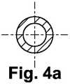 図4~図4bに示す別の実施形態では、医療用チューブ102は、その近位端部103付近のその長さの一部に沿っては丸い形状であるが、その遠位端部104付近のその長さの一部に沿って平坦な形状に遷移することができる。このタイプの医療用チューブは、フラットチャネルドレーンと称することができる。図4の線A-Aに沿った図4aに示すように、この実施形態の医療用チューブ102の第1の領域は、従来のチューブと同様である開放円筒形の断面を有する単一の内腔を有する。しかしながら、この実施形態の医療用チューブ102は、その長さに沿って遠位端部に向かって進むと、近位端部103に近接する上述した第1の領域の上記断面から、遠位端部104に近接する第2の領域の、2つの平坦な長辺と2つの丸い短辺とを特徴とする平坦な長円形の断面に遷移する。図4の線B-Bに沿った図4bは、この第2の領域における医療用チューブ102の断面を示している。ここで、チューブは、4つの別々のチャネルに仕切られる。これらのチャネルのうちの2つは、断面が略矩形であり、チューブの対向する平坦な辺に近接して互いに対向して配置され、また、上記チャネルのうちのもう2つは、断面が略半円形であり、対向する湾曲した辺に近接して互いに対向して配置される。図示の実施形態では、チャネルのそれぞれは、チューブの壁を通した流体連通をもたらすそれぞれのスリット又は孔によって、チューブを直接に囲む環境に対して開口する。  In another embodiment shown in FIGS. 4-4b, the