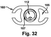 代替的に又はさらに、図26~図30の実施形態のうちのそれぞれの清掃部材107は、医療用マルチルーメンチューブ102の主内腔112又は医療用チューブ102のマルチルーメン領域に挿入可能であるように構成することができ、このとき、隣接する内腔に挿入可能であるか又は挿入される更なる分枝109は必ずしも必要とされない。例えば、図31は、ループ型清掃部材107が主内腔112の中にある状態の図9の仕切り付き医療用チューブを示している。清掃部材107は、内腔112の内壁の周縁寸法(この場合は円周)に実質的に対応するように選択されることが好ましい。図32及び図33は、ループ型清掃部材107が主内腔112の中にある状態の仕切り付き医療用チューブ102の更なる例を示している。これらの実施形態では、副内腔109を清掃するための清掃部材も分枝109も設けられていないことに留意されたい。図31~図33に示す実施形態の清掃部材107は、内腔112を通る実質的に閉塞のない経路を提供するが、代替的な実施形態の清掃部材は、内腔112を通る経路をより大きく閉塞してもよい。内腔の長さにわたって、同じか又は異なる形態の複数の清掃部材を配置することができることが理解され得る。  Alternatively or further, each cleaning