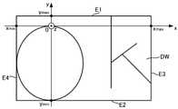 具体的に、画像取得部15は、位置データ記憶部11によって記憶された位置データに従い、入力期間におけるx座標の最大値xmax、x座標の最小値xmin、y座標の最大値ymax及びy座標の最小値yminをそれぞれ取得する。画像取得部15は、図7に示すように、軌跡取得部14によって取得された軌跡を表し、上端E1のy座標が入力期間におけるy座標の最大値ymaxに一致し、下端E2のy座標が入力期間におけるy座標の最小値yminに一致し、右端E3のx座標が入力期間におけるx座標の最大値xmaxに一致し、左端E4のx座標が入力期間におけるx座標の最小値xminに一致する矩形の画像を、印刷対象の画像DWとして取得する。Specifically, the