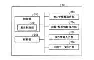 図3は、情報処理装置50の機能ブロックの一例を示す図である。情報処理装置50は、制御部250、解析部252、センサ情報取得部253、収録/解析情報保存部254、操作情報入力部255、および印刷データ出力部256を有する。制御部250は、情報処理装置50の画面表示を制御する表示制御部251を含む。  FIG. 3 is a diagram showing an example of a functional block of the