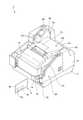 図1に示すように、サーマルプリンターユニット60は、ユニット本体の上部を覆うプリンターカバー61を備えている。このプリンターカバー61は、カバー12に対して開閉自在に取り付けられている。プリンターカバー61が開くと、ロール紙Rを収容可能な空間であるロール紙収容部62が露出し、ロール紙Rの装填や交換等が可能となる。プリンターカバー61を閉じた状態において、プリンターカバー61の前端には排紙口63が形成され、ロール紙収容部62に収容されたロール紙Rは、排紙口63を介して外部に排出される。