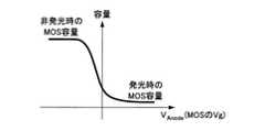 図23は、Nチャネルのトランジスタを用いたMOS容量の特性を示す説明図である。Nチャネルのトランジスタを用いたMOS容量の容量値は、有機EL素子ELが発光していない場合、すなわち有機EL素子ELのアノードの電位が低い場合に大きく、有機EL素子ELが発光している場合、すなわち有機EL素子ELのアノードの電位が高い場合に小さくなる。従って、有機EL素子ELの発光時にMOS容量T3の充電期間が短く済み、有機EL素子ELと並列にMOS容量を接続することで、低階調時におけるガンマ特性の変化を抑えることができる。 FIG. 23 is an explanatory diagram showing the characteristics of the MOS capacitance using the N-channel transistor. The capacitance value of the MOS capacity using the N-channel transistor is large when the organic EL element EL does not emit light, that is, when the potential of the anode of the organic EL element EL is low, and when the organic EL element EL emits light. That is, it becomes smaller when the potential of the anode of the organic EL element EL is high. Therefore, the charging period of the MOS capacity T3 can be shortened when the organic EL element EL emits light, and by connecting the MOS capacity in parallel with the organic EL element EL, it is possible to suppress the change in the gamma characteristic at the time of low gradation.