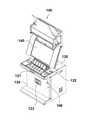 また本体筐体部120の上面には、代価である硬貨等の投入を受け付ける投入口122が設けられている。また本体筐体部120の前面には取出口123が設けられており、ゲーム装置100においてゲームカードの提供がなされる場合に、ユーザは取出口123を介して該ゲームカードを取得できる。本体筐体部120の前面は、ゲーム装置100のメンテナンス時、あるいは、提供用のゲームカードの補充時に開閉可能な開閉扉124を含んで構成されている。  Further, on the upper surface of the main