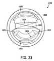 [0097]  図23は、本開示の実施態様による先端部材1700の背面斜視図である。図23は、線1801により示される開放近端1732から見た内部空洞1800の構造を図示する。図示されたように、内部空洞1800は、位置合わせ部1830及び1832、高めのU字状底部内壁1856、案内部1820及び1850、並びに遠端側平坦上部内壁1826を含んでいる。上記高めのU字状底部内壁1856は、位置合わせ部1832に対して隣接すると共に遠端側にあり、案内部1820及び1850に結合されている。  [0097] FIG. 23 is a rear perspective view of the
